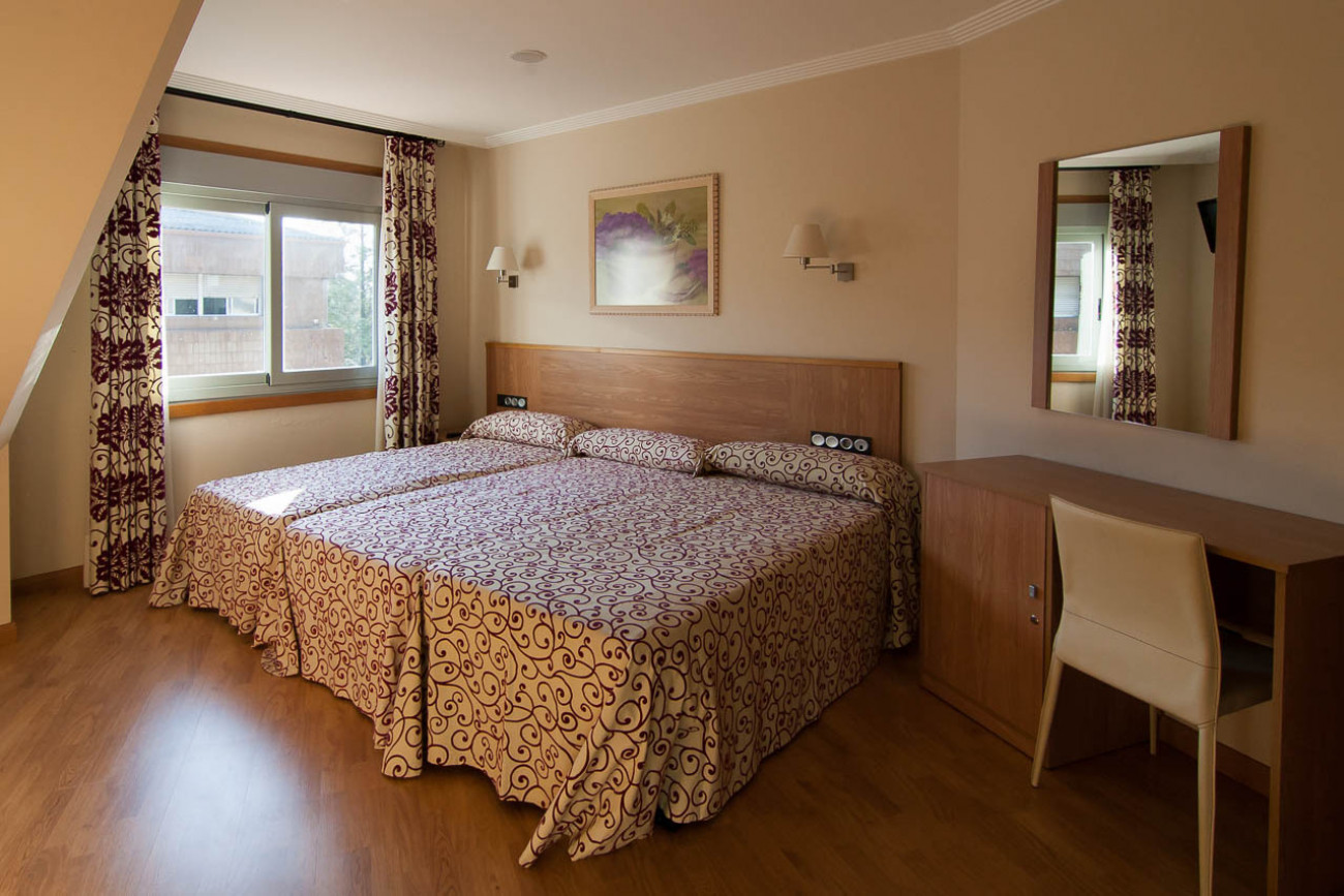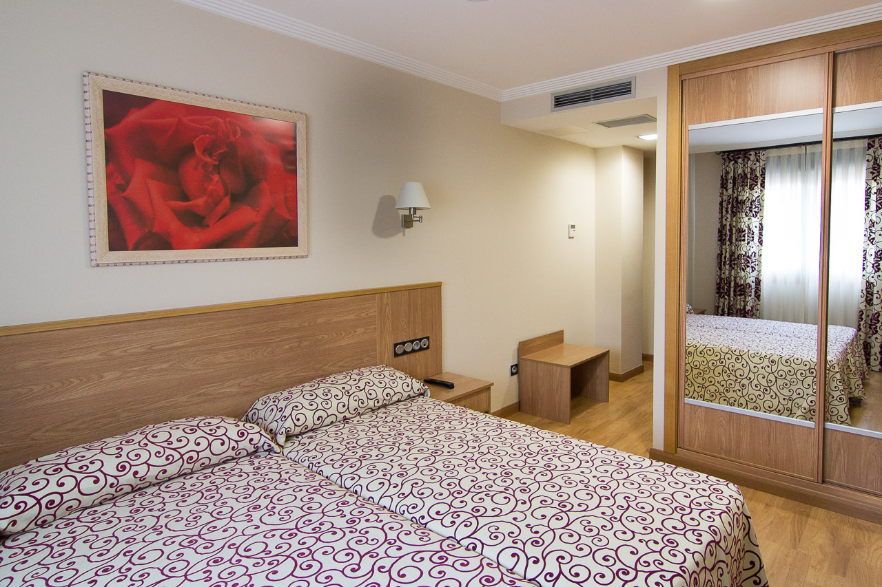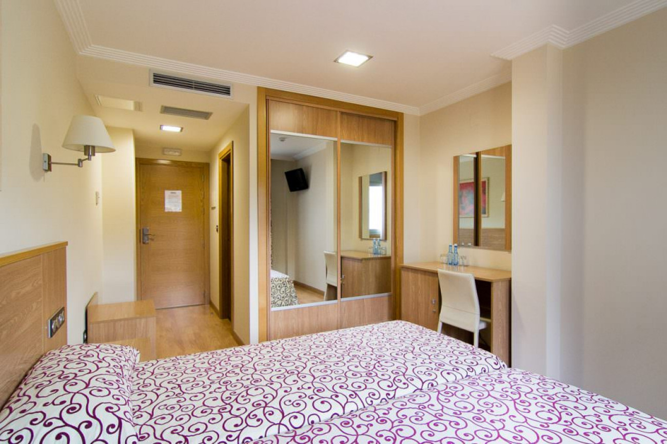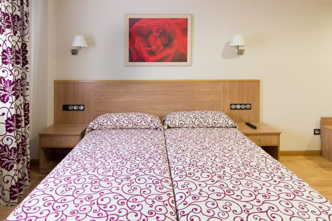 Habitación con una cama doble o dos individuales, cómoda y funcional. Dispone de baño privado con secador, calefacción, TV de pantalla plana, escritorio y wifi. Ventanas a la vía principal o a la zona residencial.